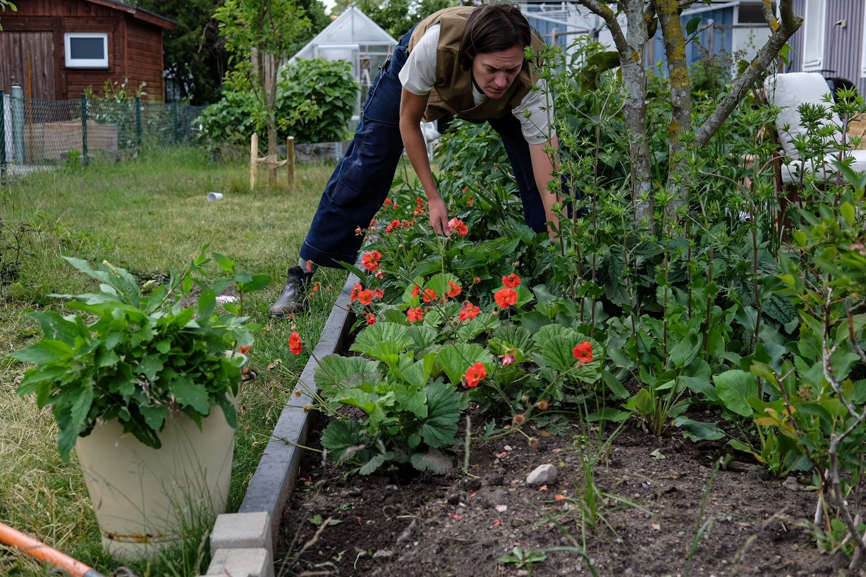 Rabattens utformning som också drar åt det lite vildare intrycket passar också fint med familjens önskemål kring skötsel, där barnens lek och behov får ta plats. Skötseln framöver består i att klippa ner vissna perenner under våren, gödsla vid behov och rensa ogräs ett par gånger per säsong.